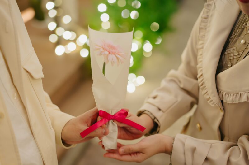 「Thanksフラワー」では、夫から妻へ、妻から夫へ、さらには親から子へ、好きなところや日頃からの“ありがとう” の気持ちを伝えながら、「感謝」の花言葉をもつガーベラをお渡しいただきました。気持ちを伝える側も、受け取る側も、照れながら笑顔があふれる時間でした。
