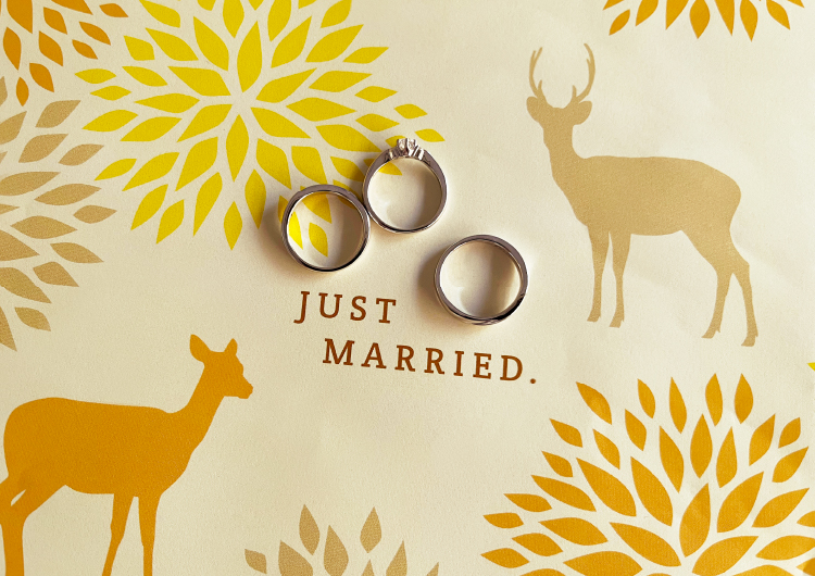 旧暦長月に咲き誇ることから「長月花(ながつきばな)」とも呼ばれる菊をモチーフにしました。「信頼」「高潔」という花言葉をもち、不老長寿の象徴とされてきました。これから共に人生を歩むおふたりにぴったりです。