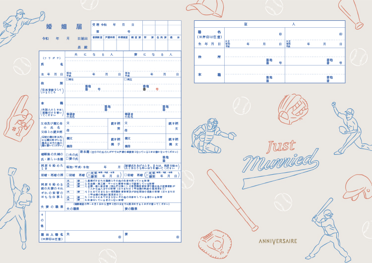 「婚姻届にもふたりらしさを込めたい」「SNSにも映えるおしゃれな婚姻届がほしい」という声にお応えし、100個のハートをモチーフにした記念デザインや、100本のバラを描いたロマンチックなデザイン、秋の実りをイメージしたデザイン、野球をテーマにしたデザインなど、多彩な新作を追加しました。婚姻届の提出日が「結婚記念日」となることから、婚姻届とともに写真を撮り、SNSに投稿するカップルも多く見られます。アニヴェルセルの婚姻届は、おふたりらしいデザインを豊富な種類から選べ、大切な結婚記念日を素敵な想い出として残せることから多くの方にご好評いただいています。