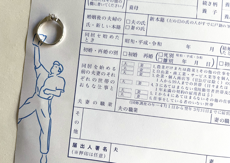 野球が好きなおふたりにぴったりのデザインです。ピッチャーとキャッチャーが互いを信じ、支え合う「バッテリー」のように、固い絆で結ばれたおふたりの門出を祝います。試合観戦が思い出深い方にもおすすめです。
