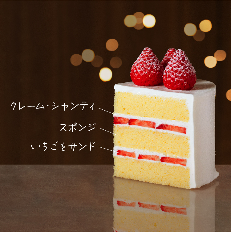 25年以上にわたり培ってきたノウハウとレシピを活かし、スポンジはしっとり、クリームは甘すぎないケーキに仕上げました。くちどけの優しい生クリームと酸味のあるいちご、ふんわりとしたスポンジの組合せが絶妙です。ウェディングパティシエならではの繊細なデザインも特徴です。特別な記念日を彩る手づくりのクリスマスケーキをお楽しみください。